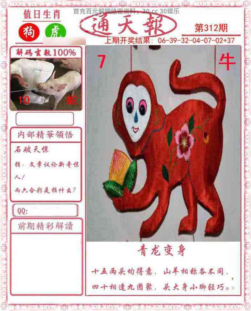 312期:七肖中特【牛狗鼠猴猪蛇】开:龙14准